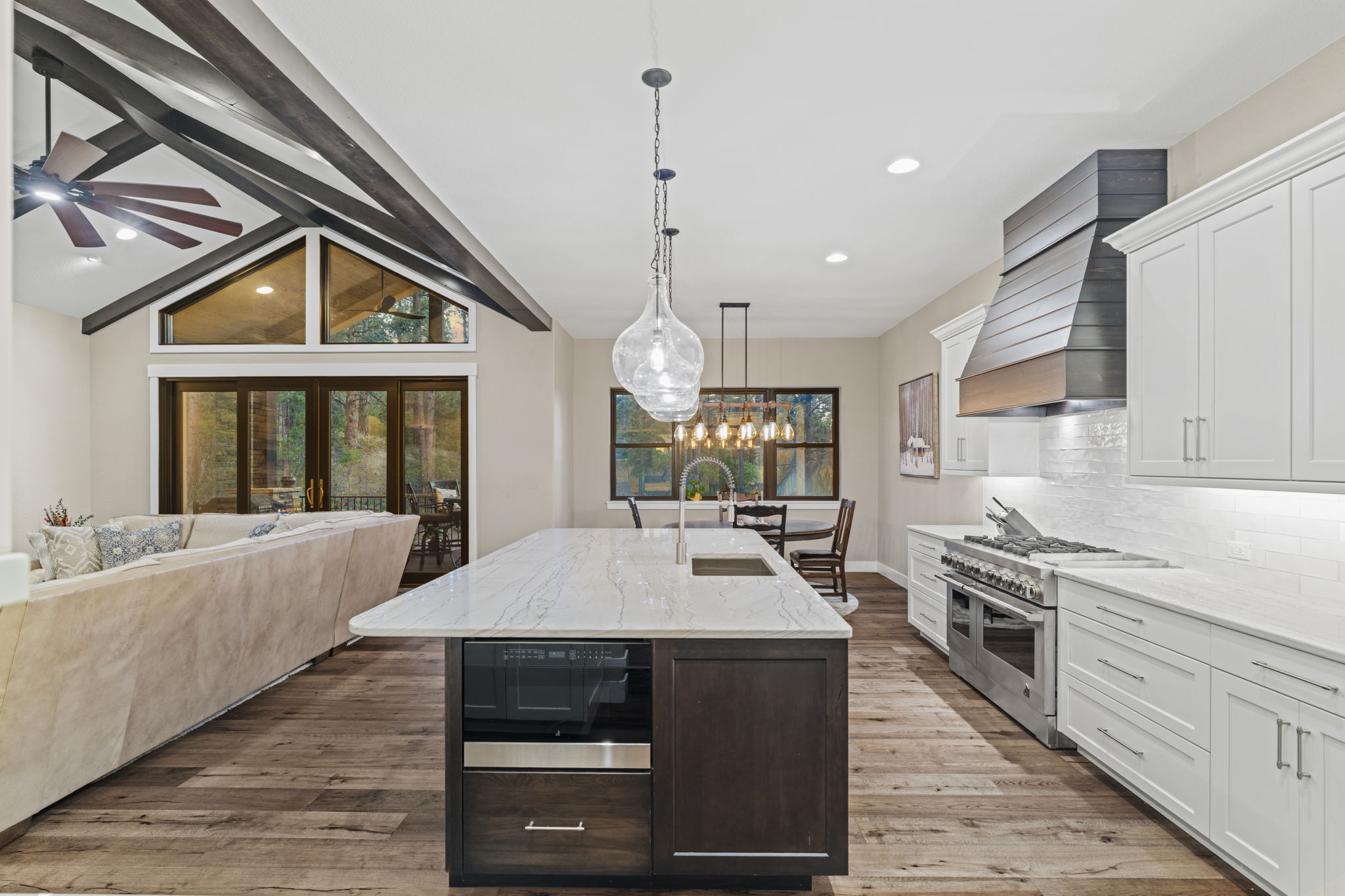 Brazilian quartzite counters, walnut accents, and professional-grade appliances create a true chef’s dream.